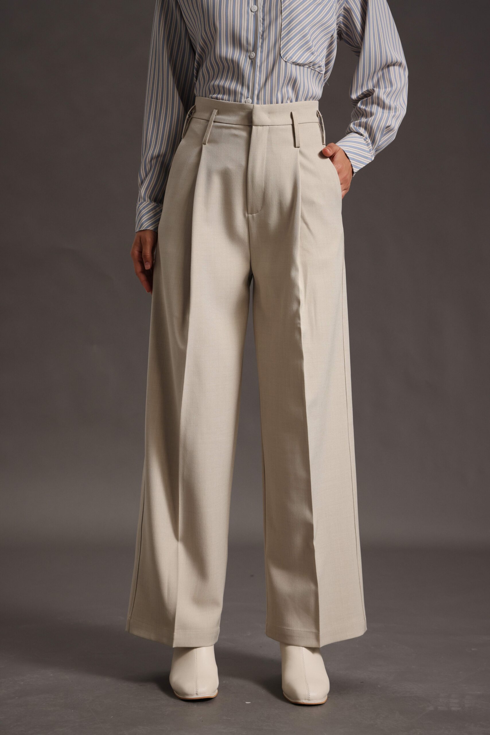 Pantalonii palazzo ecru sunt creați dintr-o țesătură tip costum, cu cădere frumoasă și aspect curat, potriviti pentru ținute office, ocazii smart-casual sau evenimente de zi. Talia înaltă subțiază vizual, iar pensele frontale adaugă volum controlat în zona șoldurilor pentru un joc elegant al liniei. Croiul wide-leg alungește piciorul și oferă lejeritate la purtare pe tot parcursul zilei.