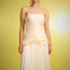 Rochia Isaura emană delicatețe și rafinament, fiind alegerea perfectă pentru seri elegante, cine romantice sau evenimente de gală. Croiala lungă, fluidă, din voal ușor, se așază cu grație pe siluetă, iar partea superioară fără bretele oferă un aer modern și sofisticat. Detaliul de volane fine în zona taliei adaugă un plus de feminitate și eleganță.